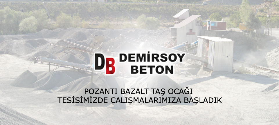Firmamız, 2009 yılında, Pozantı merkezli Kum Ocağı Tesisinde büyümeye gitmiş ve aynı saha içerisine Demirsoy Hazır Beton Tesisi’ni kurarak bölgenin ve sektörün, çağın yeniliklerinin beraberinde getirdiği ihtiyaçlarına cevap vermeye çalışmıştır.